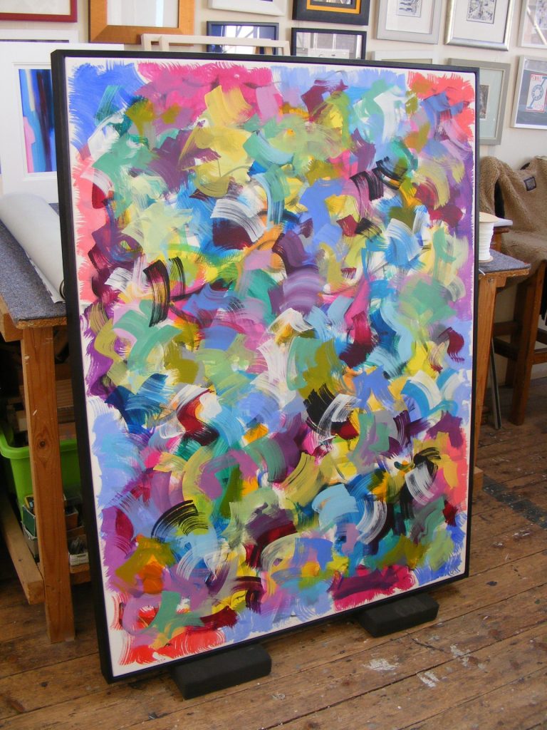 Returning to Leicester to live in 1998 I had a need to express myself and turned to Painting. I started to get a feel for paint and the use of colour. My work was very much influenced by 20th century painters, such as Picasso and Howard Hodgkin as well as my life experiences and Cornwall.