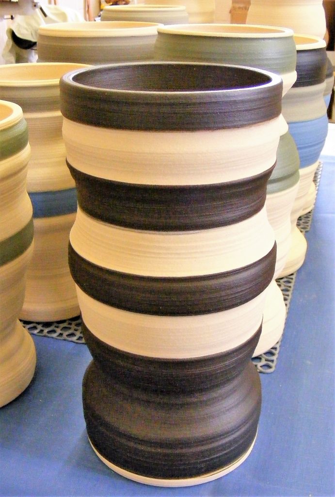 Johnny’s ceramic work is deeply tactile and earthy. Each vessel or sculpture feels grounded, with natural glazes and organic forms. Functional pieces double as decorative art.